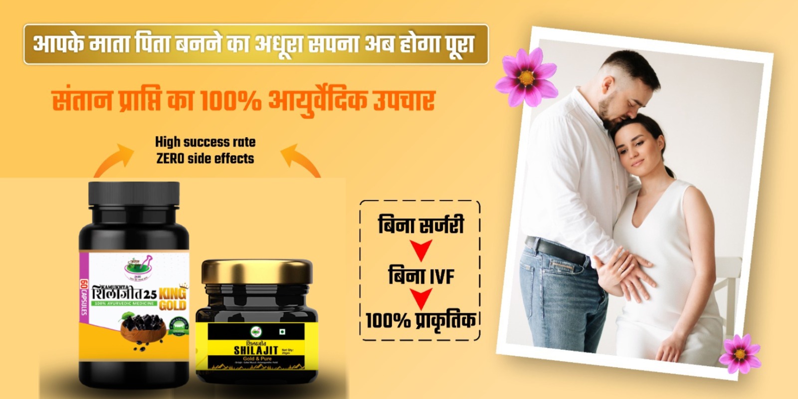 वैध जी महेंद्र पाल शर्मा ने क्यी सालो की रिसर्च के बाद बनाई आयुर्वेदिक दवा Kamukhta Shilajit 25- King Gold को 61 से भी अधिक दुर्लभ जड़ीबूटी से बनाया गया है जो की महिलाओं की फर्टिलिटी बूस्ट करता है वोह भी मात्र 25 से 30 दिनो मे|